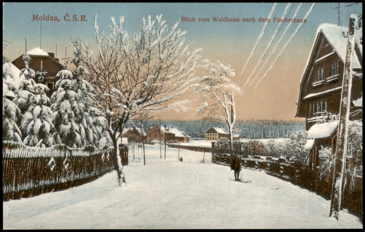 Postcart: Fischerhaus Straße im Winter - Moldava