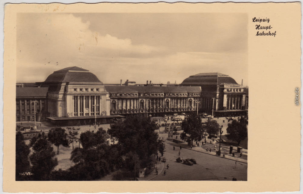 Photo Card: Hauptbahnhof mit Straßenbahn und Bäumen - Leipzig