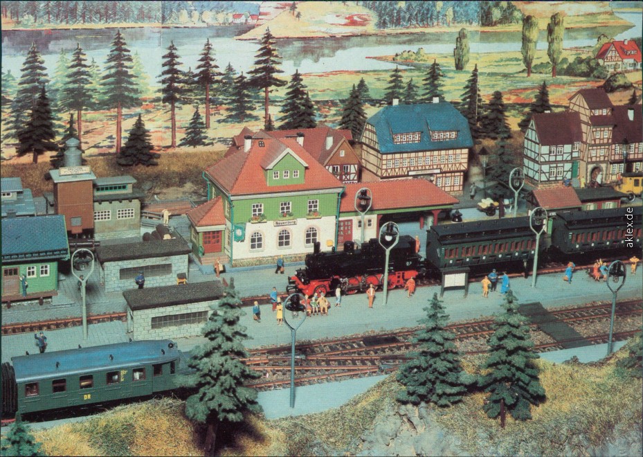 Postcart: 2,60m x 0,85m große HO-Heimanlage von Gerhard Germar, Jena(1978) mit einem Motiv aus der Gründerzeit der DRG, etwa um 1925