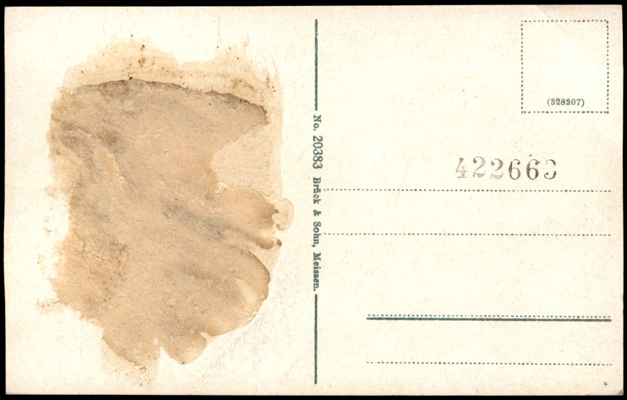 auf der Rückseite Kleberückstände und abgerissenes Papier
