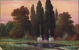 Künstlerkarte Ansicht Landhaus Hof mit Brunnen Anlage