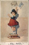 Kinder Künstlerkarte Mädchen mit Tafel Künstlerkarte Bertha Heller