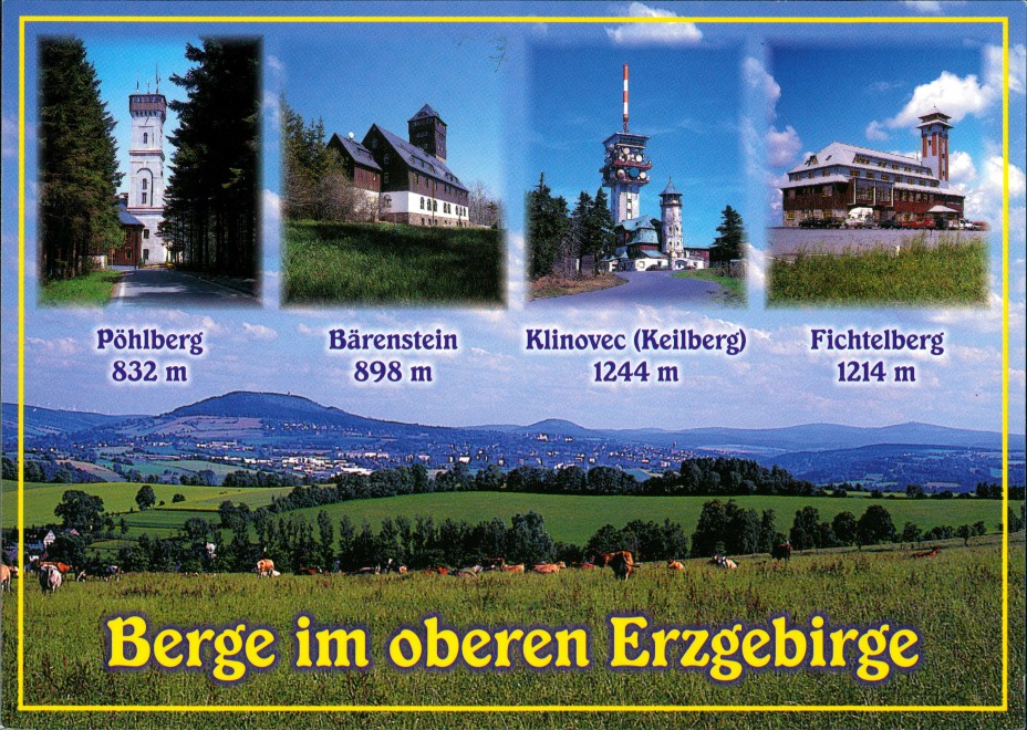 Postcart: Pöhlberg, Bärenstein, Klinovec, Fichtelberg - .Sachsen