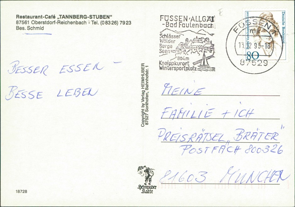Postcart: Restaurant-Cafe Tannberg-Stuben - Oberstdorf