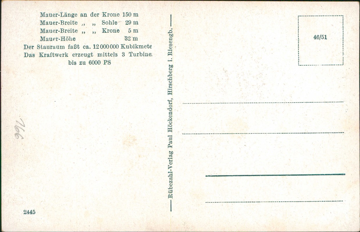 Postcart: Talsperre mit Staumauer - Złotniki Lubańskie-Leśna