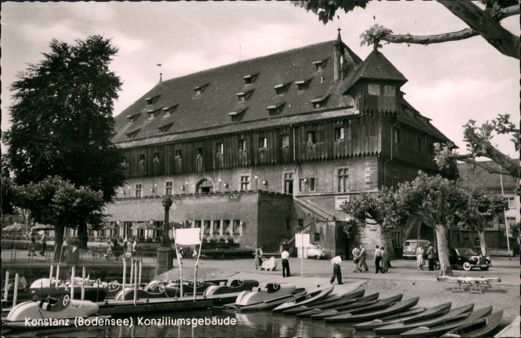 Postcart: Konzilgebäude Trettboot - Konstanz
