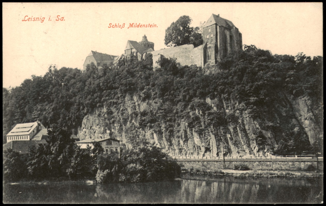 Postcart: Schloss Mildenstein - Bahnstrecke - Leisnig
