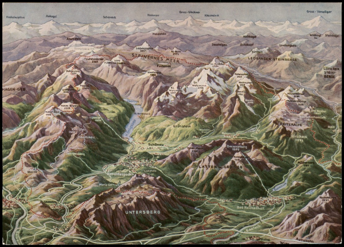 Postcart: Reliefkarte aus dem Berchtesgadener Land - Berchtesgaden