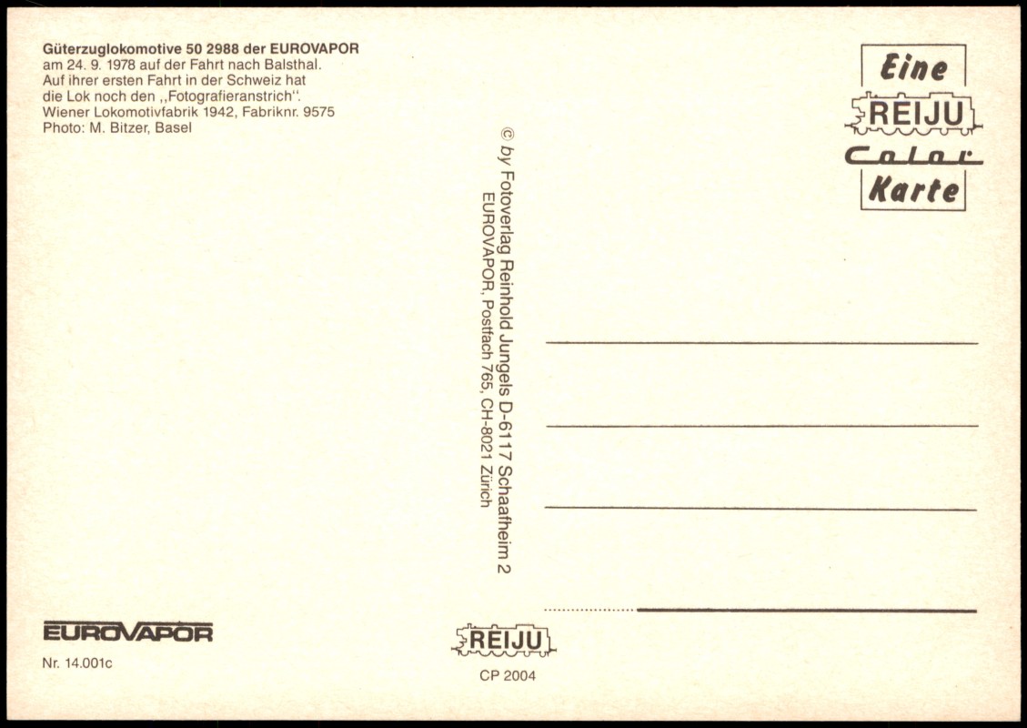 Postcart: Dampflokomotive Güterzuglokomotive 50 2988 EUROVAPOR