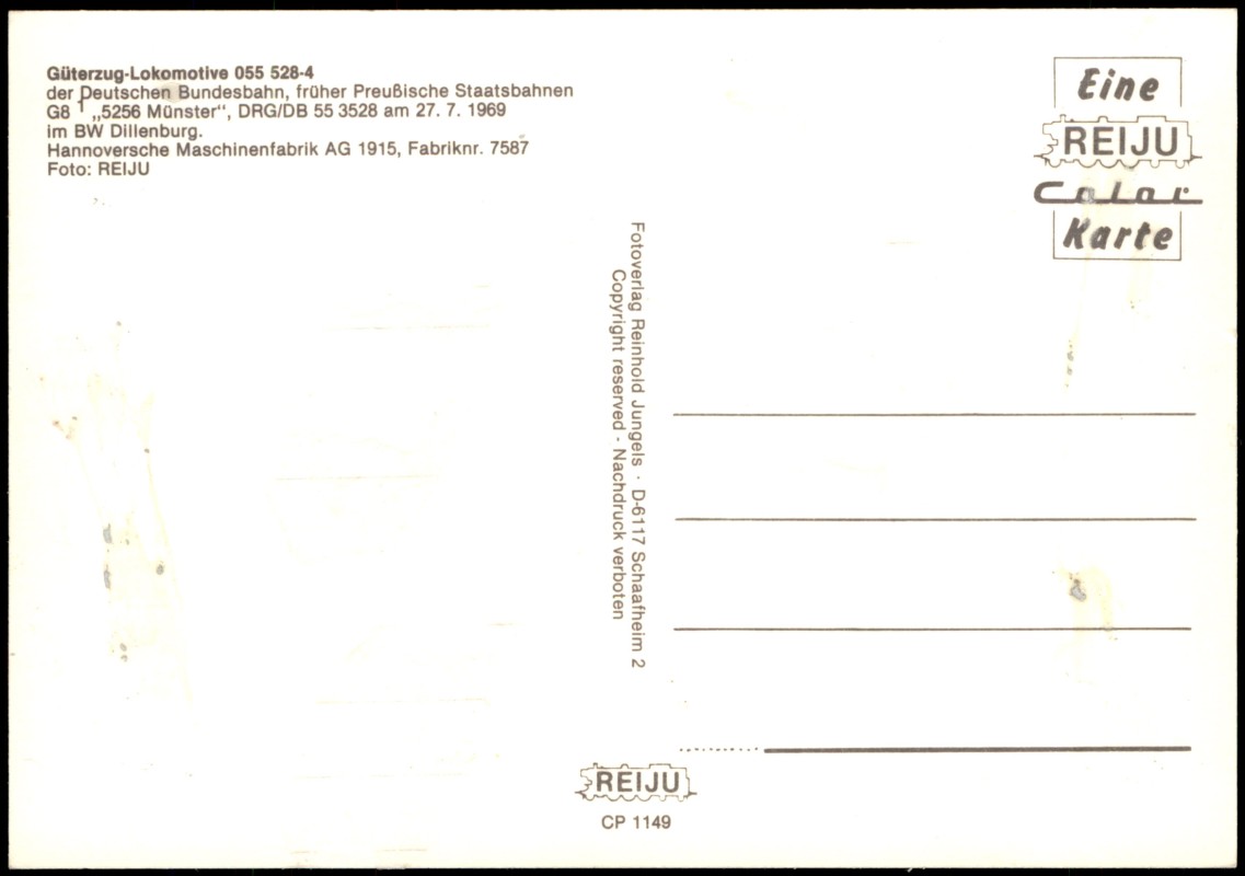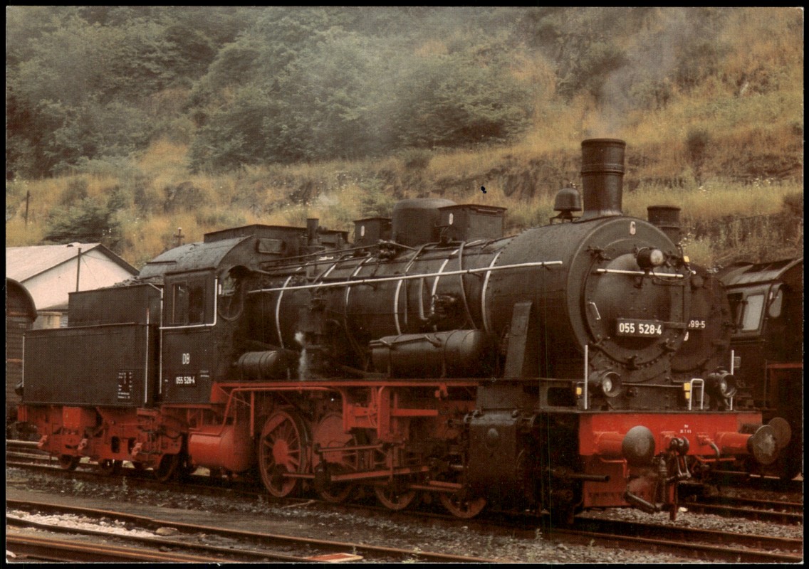 Postcart: Dampflokomotive 055 528-4 im Bw Dillenburg Eisenbahn
