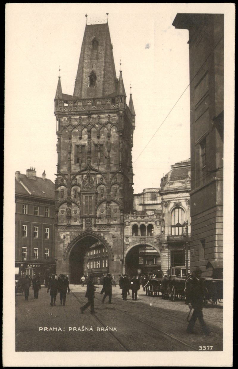 Postcart: PRAŠNÁ BRÁNA belebt Kutschen - Prague