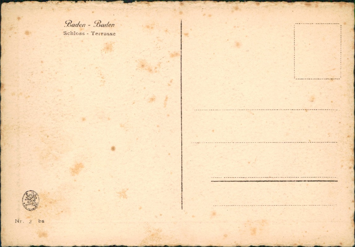 vintage Postcard from 1929: Schloss Terrasse:: Baden-Baden Address side