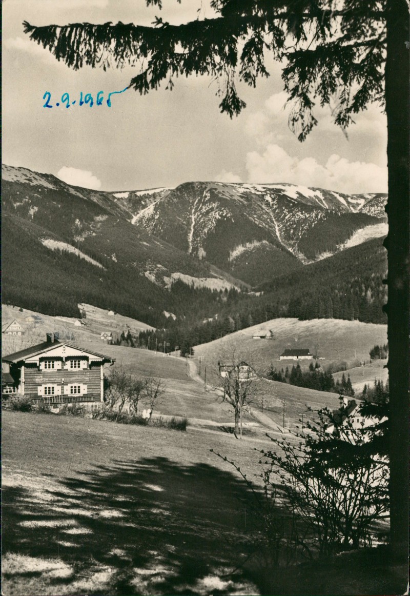 Postcart: Hütten an der Stadt - Špindlerův Mlýn | Spindelmühle