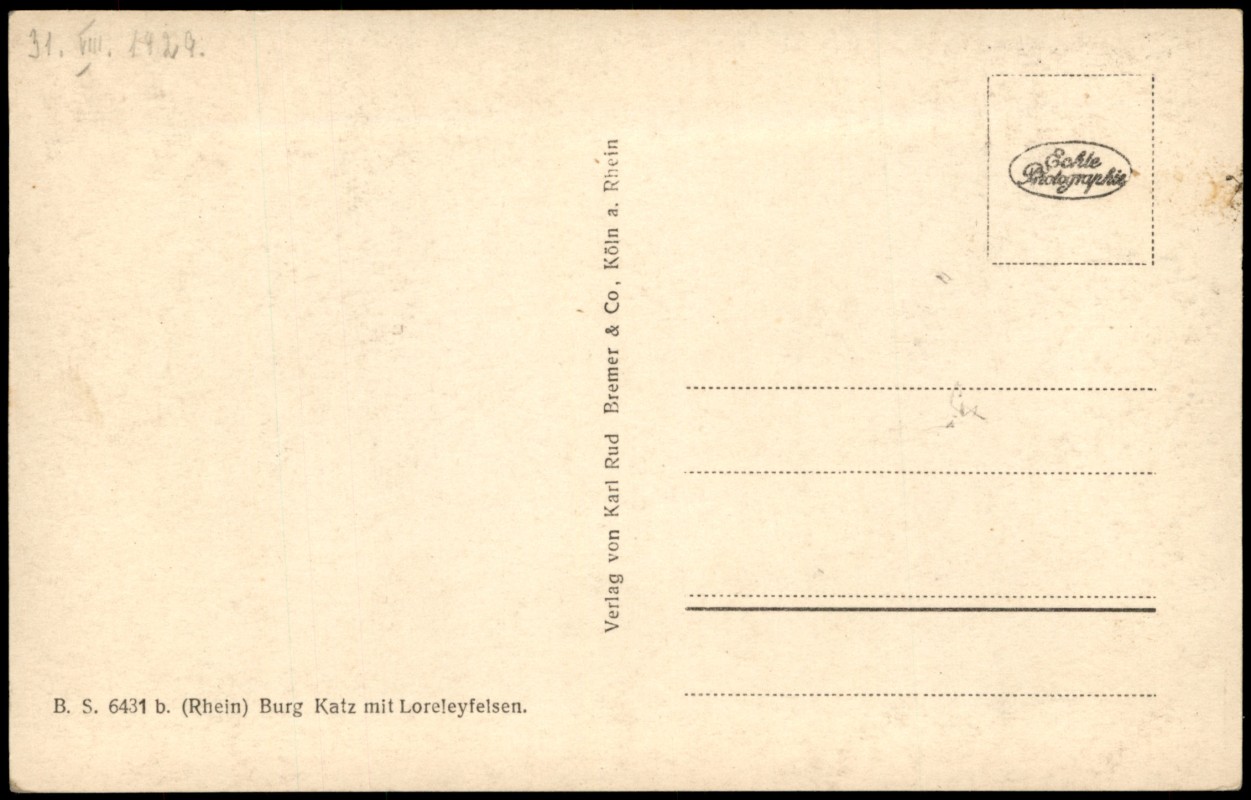Photo Card: Burg Katz mit Loreleyfelsen am Rhein - St. Goarshausen