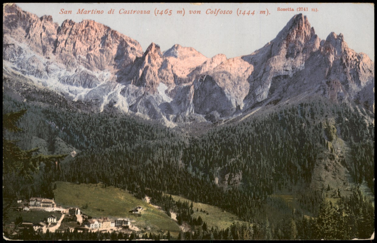 Postcart: Stadt mit Bergkette - San Martino di Castrozza