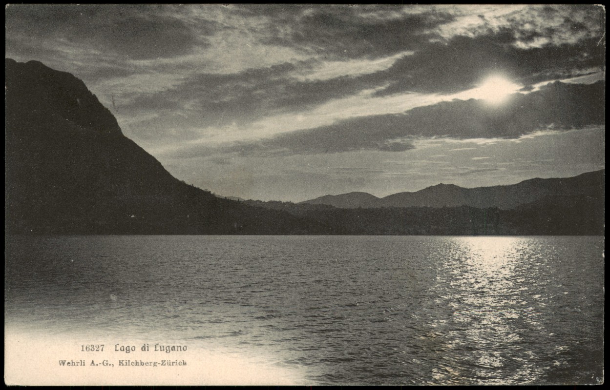 Postcart: Lago di Lugano bei Mondschein Stimmungsbild - Lugano
