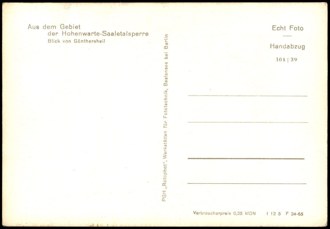 Photo Card: Hohenwartetalsperre Blick von Günthersheil zur DDR-Zeit - Hohenwarte-Kaulsdorf