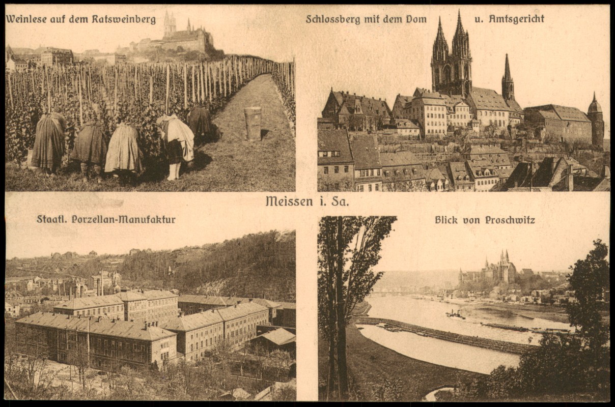 Postcart: Weinlese Ratsweinberg, Blick von Proschwitz - Meissen