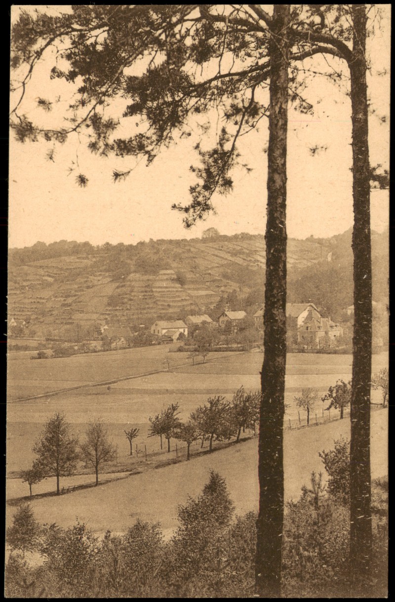Postcart: Blick durch die Bäume auf die Stadt - Diesbar (Elbe)-Diesbar-Seußlitz-Nünchritz (Elbe)