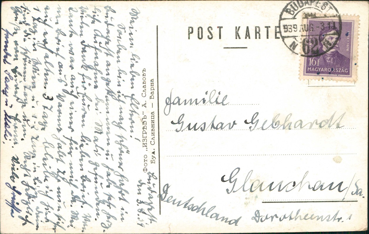 vintage Postcard from 1939: Straße und Strand - Fotokarte:: Varna Address side