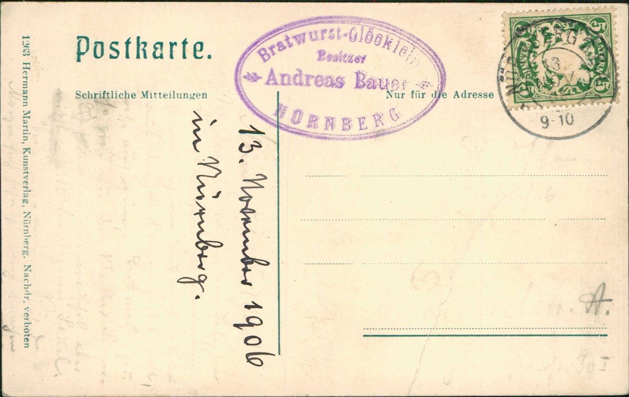 Postcart: Bratwurstglöcklein Angestellte und Geschäft - Nuremberg
