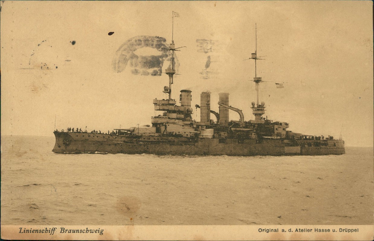 Postcart: Schiffe Schifffahrt Kriegsschiffe Marine Linienschiff Braunschweig
