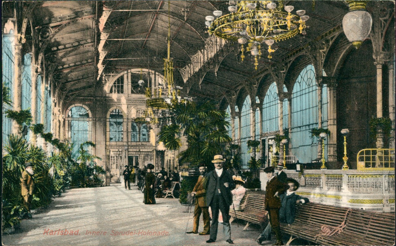 Postcart: Sprudelkolonnade - Inneres feine Herrschaften - Karlovy Vary