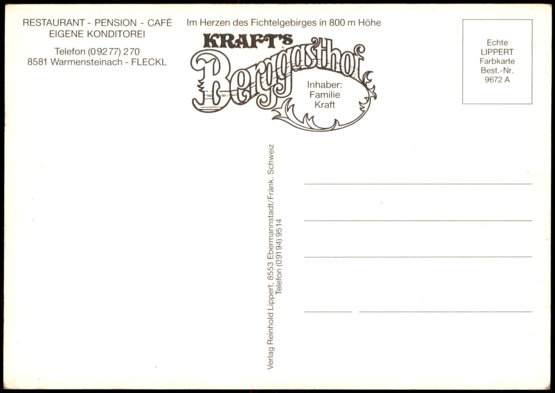 Photo Card: MB KRAFT'S Berggasthaus RESTAURANT PENSION CAFÉ EIGENE KONDITOREI - Fleckl-Warmensteinach