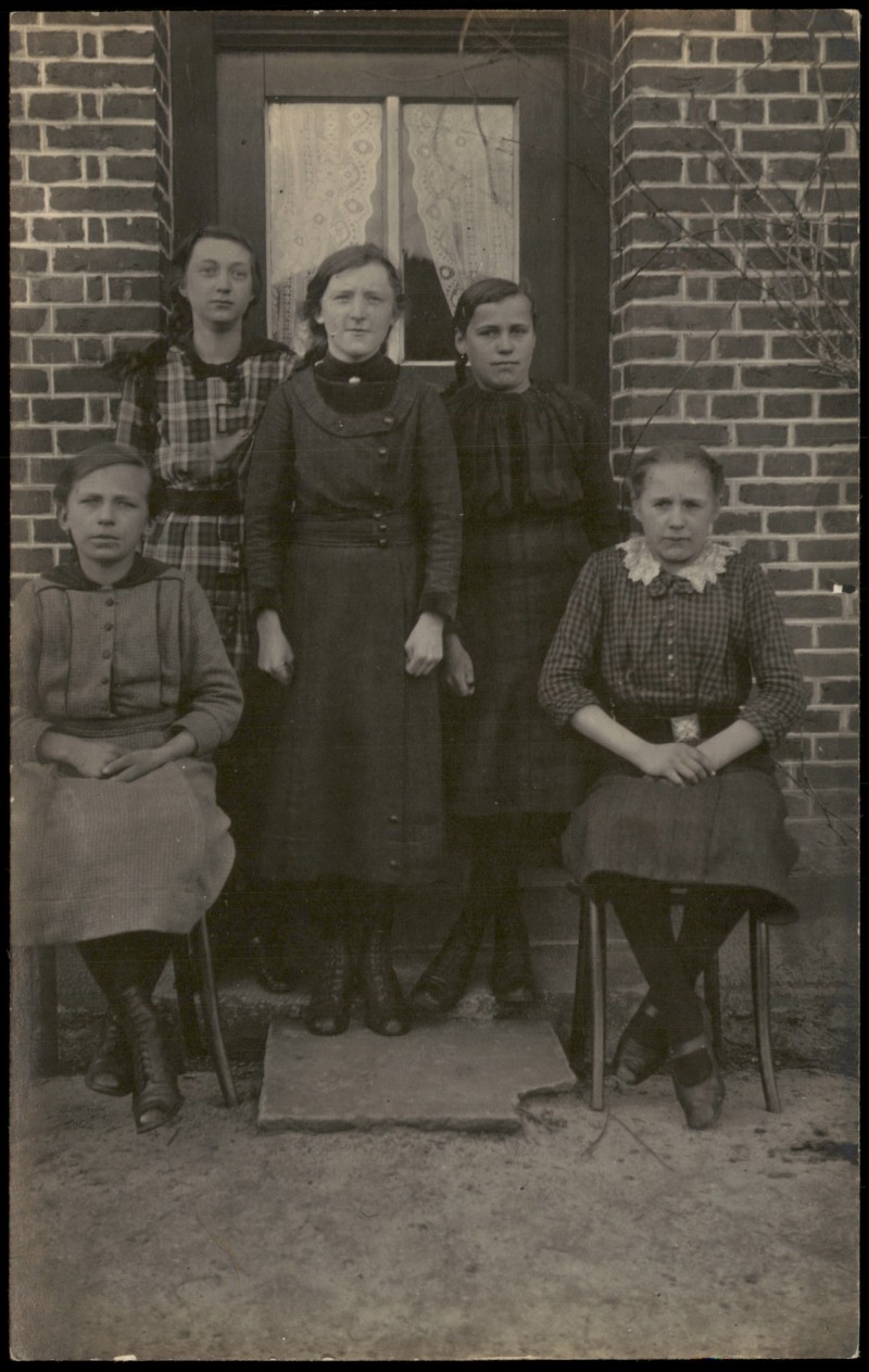 Photo Card: Menschen Soziales Leben Frühe Fotokunst Frauen Gruppenfoto vor Haus