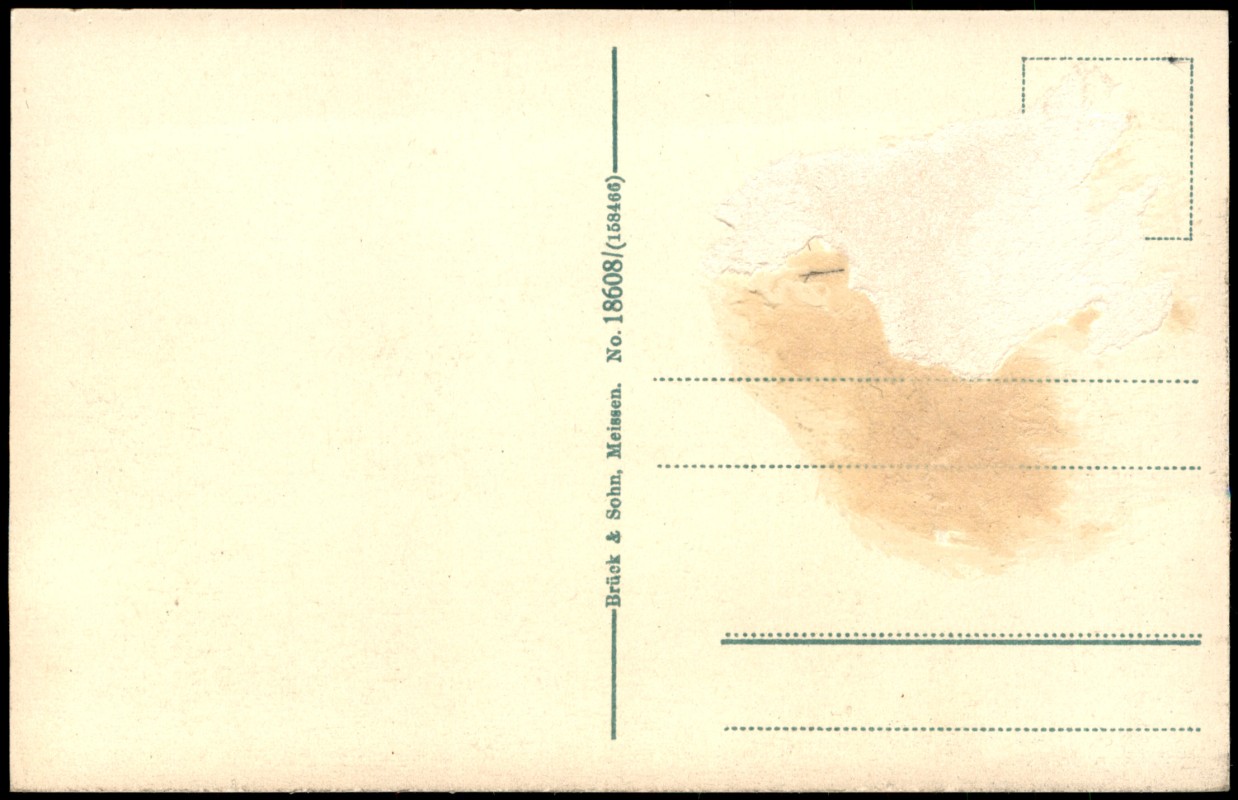 auf der Rückseite Kleberückstände und abgerissenes Papier