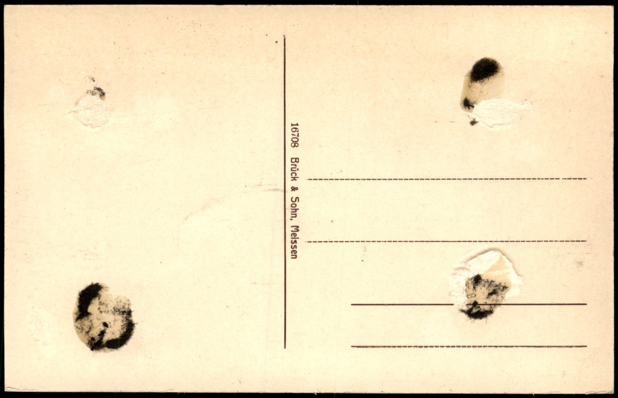 auf der Rückseite Kleberückstände und abgerissenes Papier