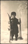 Atelierfoto (aus Gotha) Kind Junge mit Ski-Brettern posierend