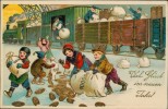 Orts-/Ufer-Ansicht mit Personen u. Schiffen