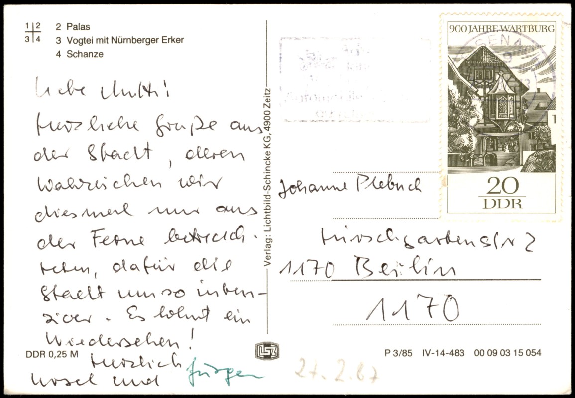 Postcart: Wartburg - Vogtei mit Nürnberger Erker - Schanze - Eisenach
