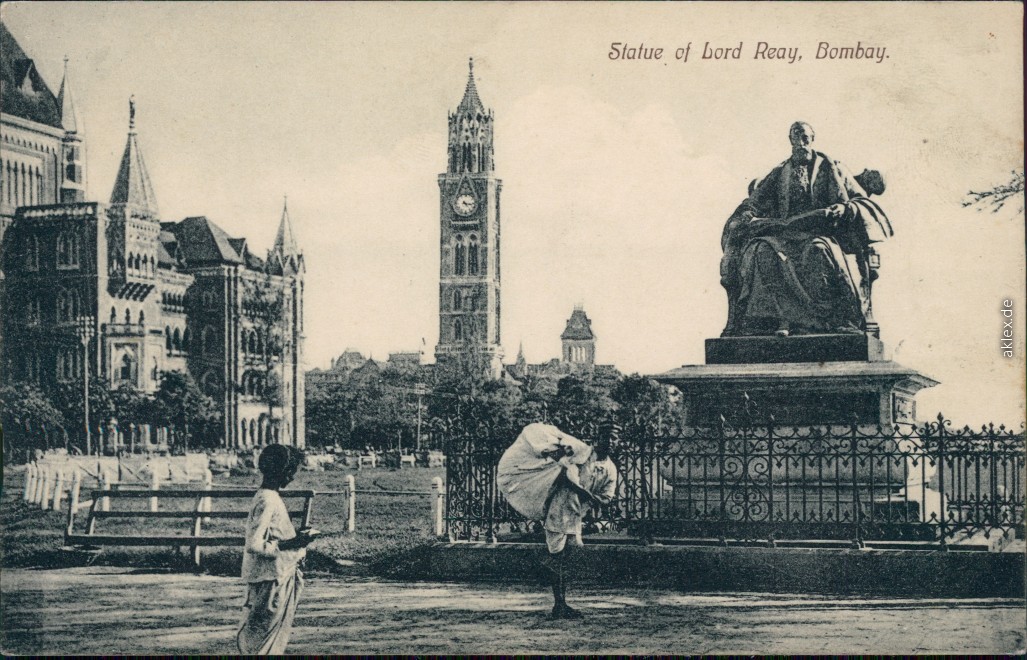 Postcart: Straßenpartie und Statue des Loard Reay - Mumbai (Bombay)
