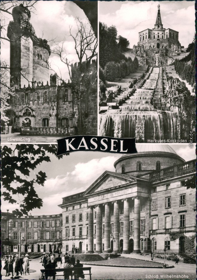 Postcart: Löwenburg, Herkules-Kaskaden, Schloß Wilhelmshöhe - Kassel