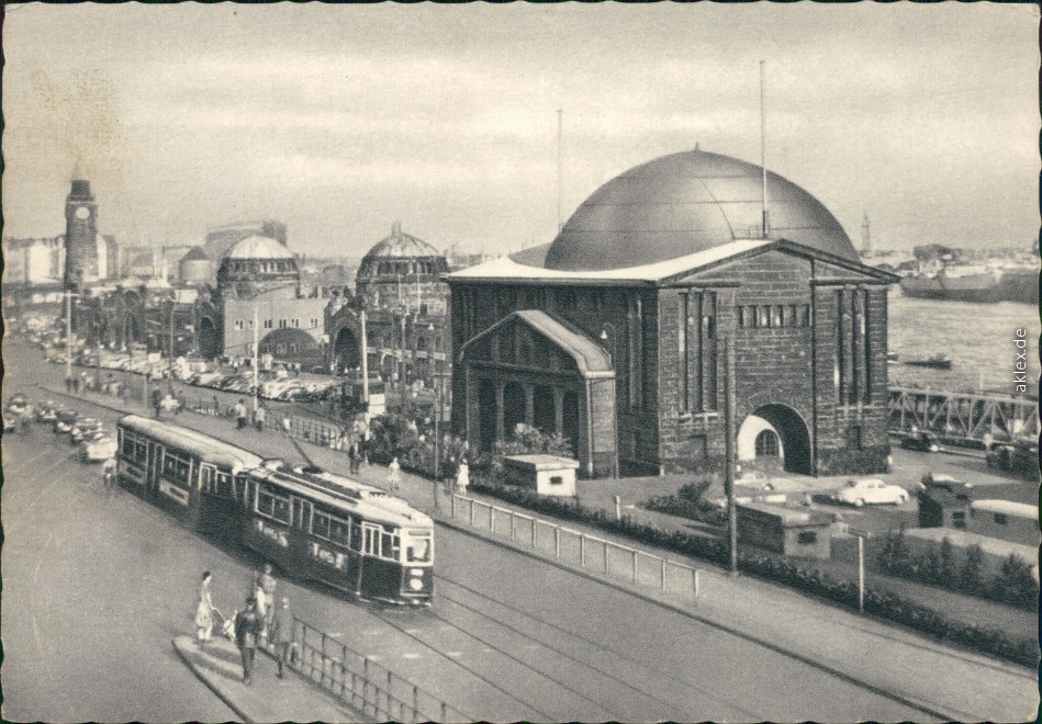 Postcart: Landungsbrücken und Straßenbahn - St. Pauli-Hamburg