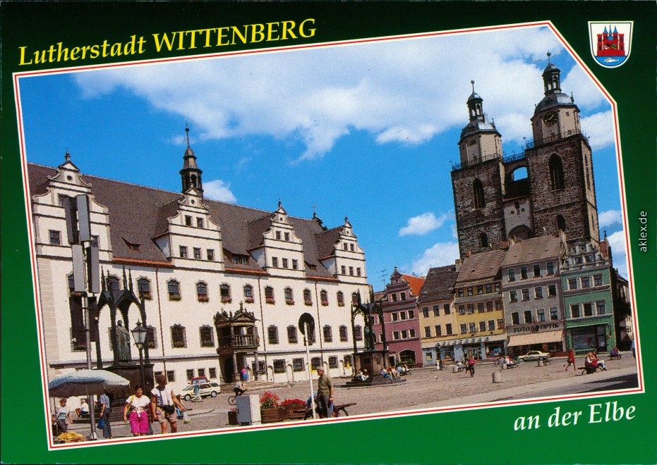 Postcart: Rathaus mit Stadtkirche - Lutherstadt Wittenberg