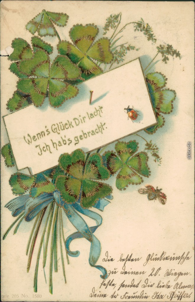Postcart: Glückwunsch / Grusskarten: Allgemein - Kleeblatt - Wenn's Glück Dir lacht