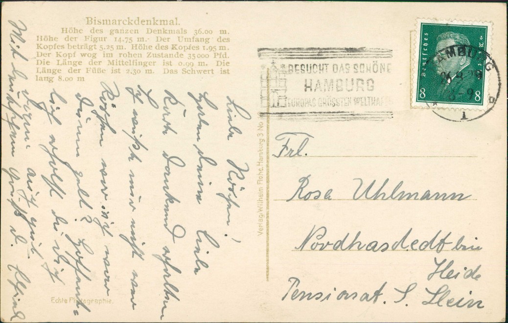 Postcart: Bismarck-Denkmal - St. Pauli-Hamburg