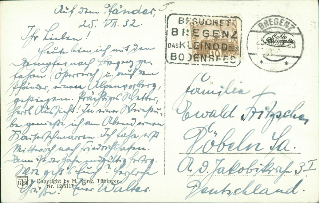 Postcart: Luftbild Pfänderspitze - Bregenz