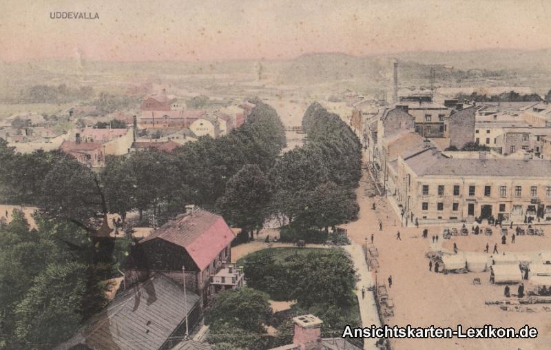 Postcart: Blick auf Markt und Straße (coloriert) - Uddevalla