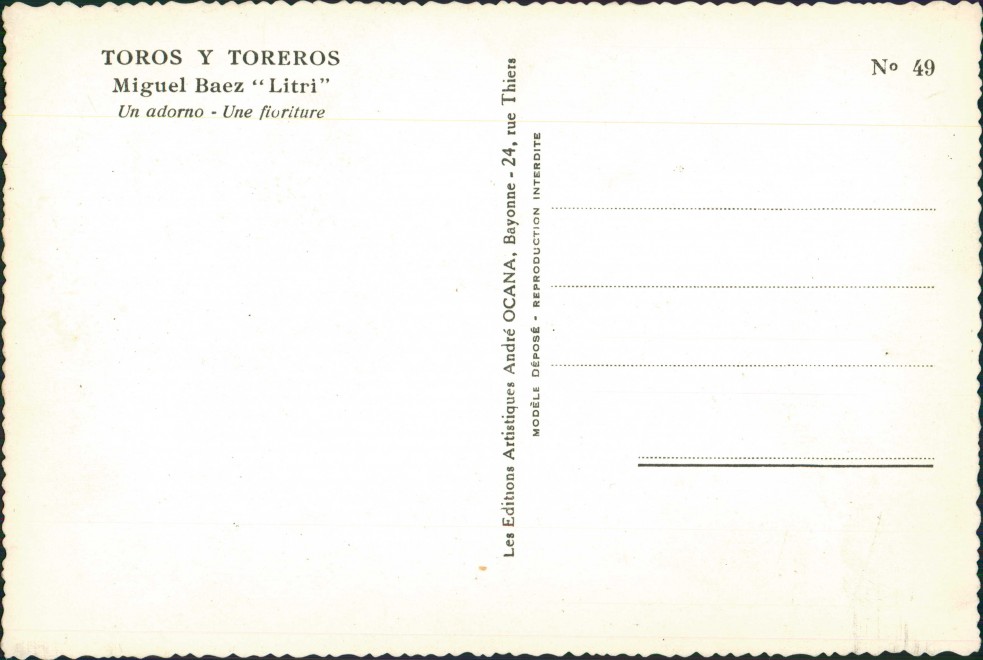 Photo Card: Stierkampf, Torero Miquel Baez "Litri", un adorno