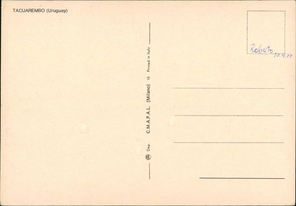 Photo Card: TACUAREMBO (Uruguay) Strassen Partie mit Kirche - Tacuarembó