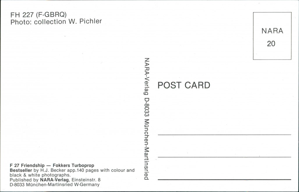 Postcart: Propellerflugzeug F 27 Friendship - Fokkers Turboprop FH 227 (F-GBRQ) TAT