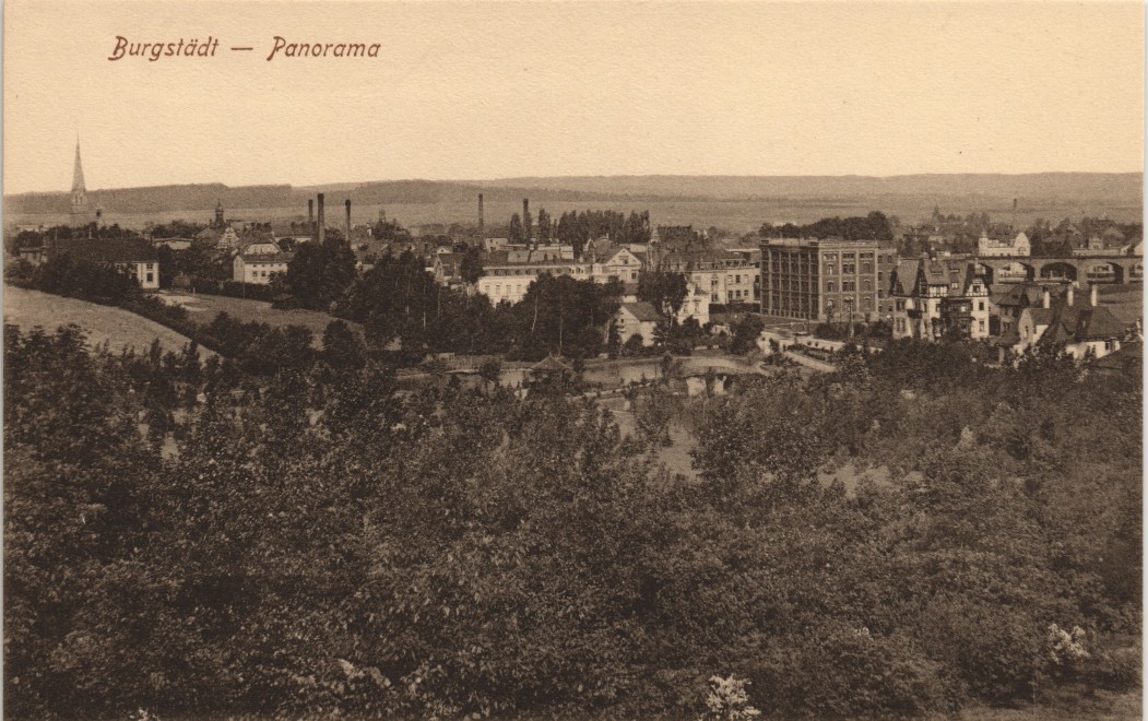 Postcart: Fabrik und Stadt - Burgstädt