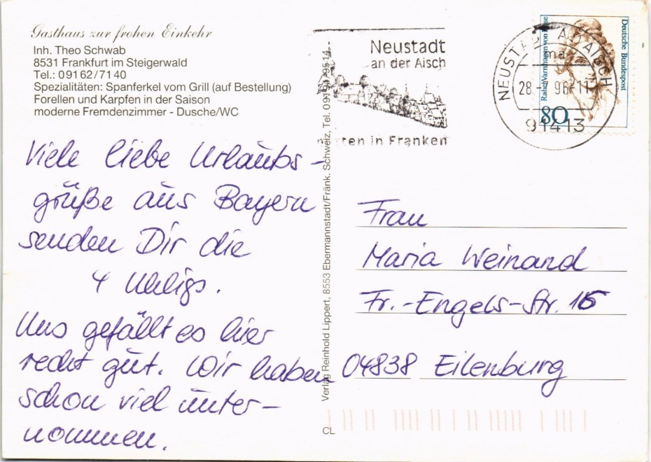 Photo Card: Gasthaus zur frohen Einkehr Inh. Theo Schwab - Frankfurt (Steigerwald)