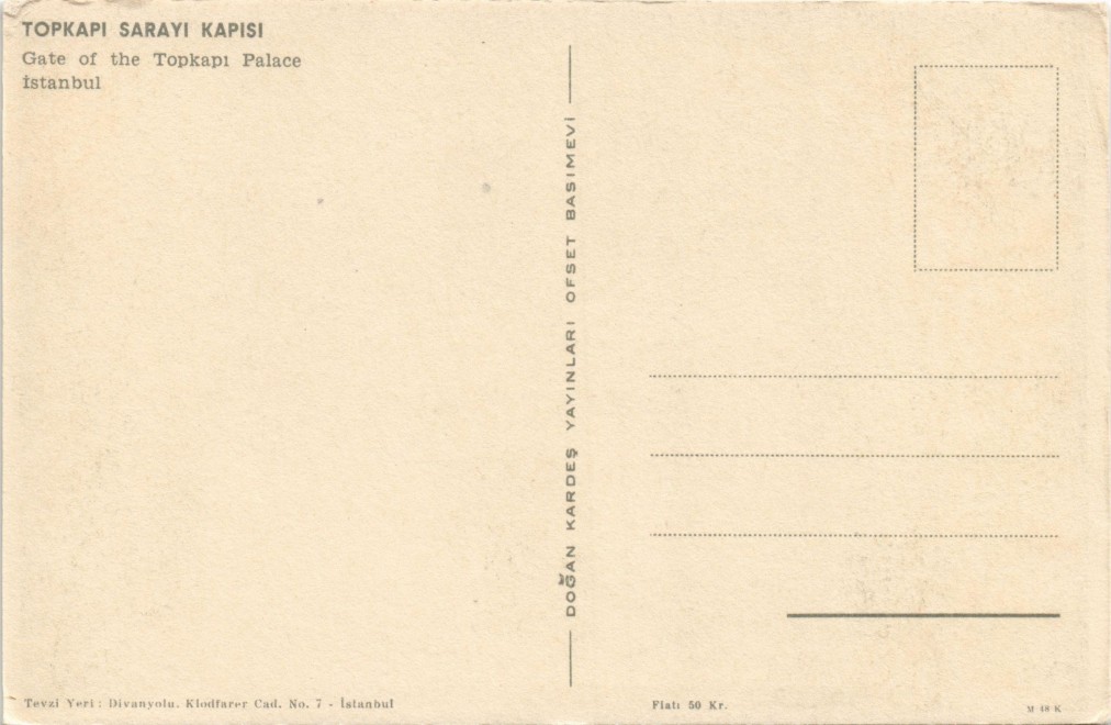 Photo Card: TOPKAPI SARAYI KAPISI Gate of the Topkapi Palace - Istanbul