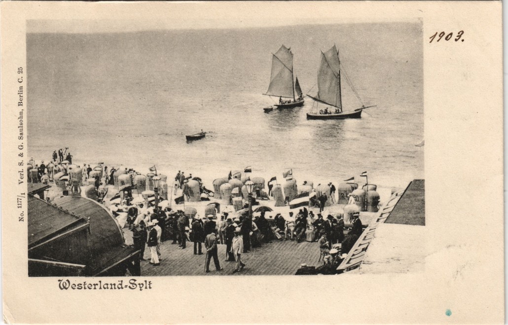 Postcart: Strandrestaurant - belebt Segelboote - Westerland-Sylt