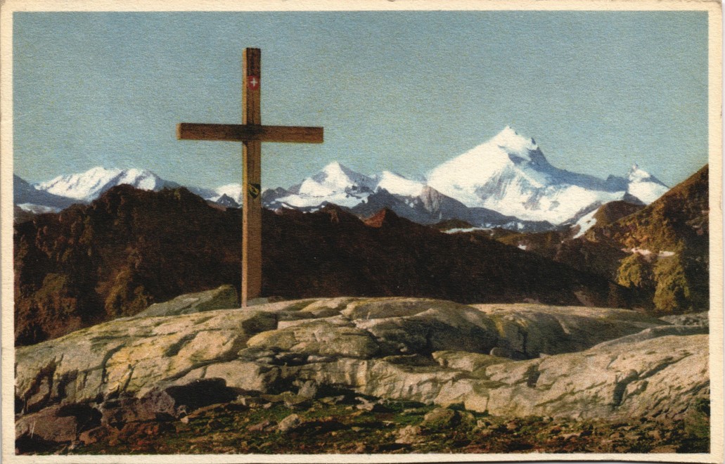Photo Card: Bergkreuz auf dem Lötschenpass Lyskamm-Brunegghorn-Weisshorn-Rothorn - .Schweiz